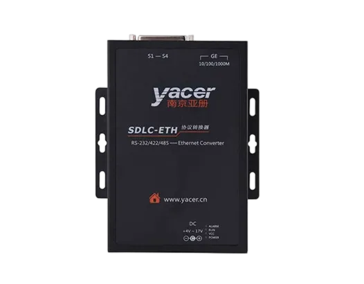 The Yacer SDLC-ETH High-Speed Synchronous Serial Converter, provides four high-speed RS-232/422/485 multi-protocol serial ports, supports synchronous HDLC/SDLC protocol and asynchronous UART mode. One Gigabit Ethernet port, realizes protocol conversion between serial and ethernet, supports serial Ethernet bridge function.
